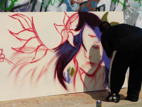 Aqui teneis las imagenes de lo que hice conjuntamente con los chicos/as que vinieron al taller y el graffiti final que hice para la dedicatoria a "San", presentadora de dicho programa.