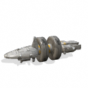 Las enormes ruedas que se aprecian en el centro de gravedad de la espacionave son las que curvan el espacio para superar la velocidad de la luz. Al mismo tiempo son capaces de generar "El trueno de Zeus",la potentisima